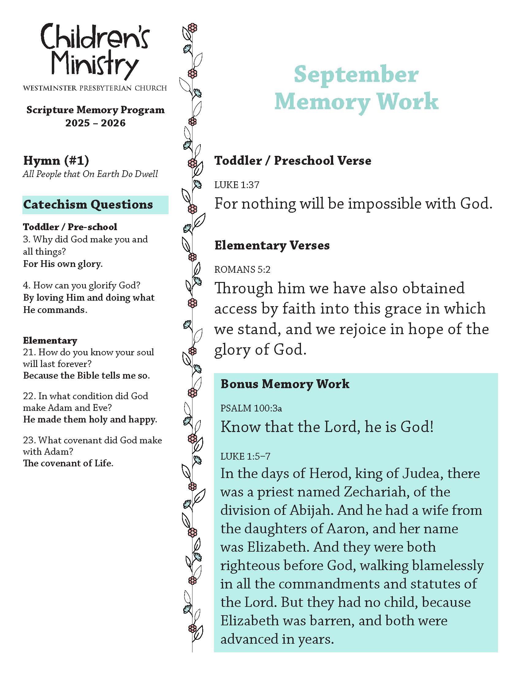 Memory Work for September 2025