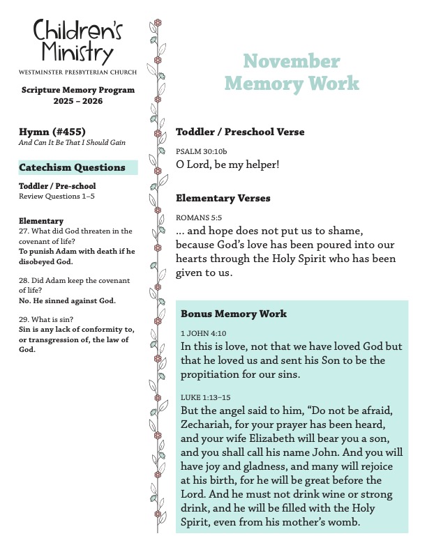 Memory Work for November 2025